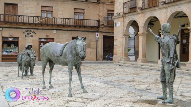 Situarse en el centro, donde desde hace unos años se ha instalado la obra escultórica “Homenaje a Cervantes” del artista local Juan Antonio Giraldo, e ir girando lentamente, tratando de retener en la retina la cantidad de imágenes que ofrece, es una experiencia inigualable.